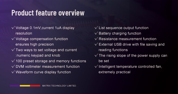 In laboratory calibration, product R&D, and electronic component debugging, a stable, high-precision, and multi-functional DC power supply is an irreplaceable cornerstone. The MPS-1000 Series from MATRIX TECHNOLOGY distinguishes itself through its 0-150V/0-10A wide operating range, 0.1mV/1uA resolution, integrated List/Battery/Resistance test capabilities, and dedicated 3-year warranty for lab/R&D applications. Notably, the 150W linear power variant (MPS-1012) seamlessly integrates the inherent stability of linear power supplies with exceptional performance, emerging as a trusted companion for researchers and engineers alike.